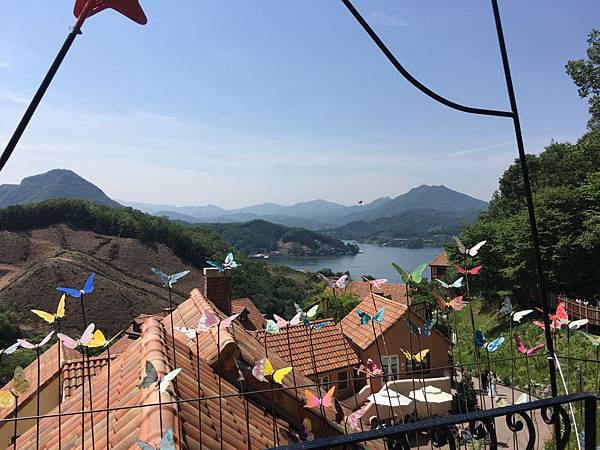 韓國旅遊Day2主要進攻法國村跟南怡島,這兩個地方真的蠻偏遠的,菲菲只記得從首爾坐了快一小時的車程,下車後也是感到一陣熱呀😎雖然五月是春末,但韓國此時早晚溫差大,白天將近28度喔,晚上只要不下雨,都算涼爽。好了~重點是小法國村,為何取這個名字,當然跟裡面的景物都是仿法國鄉村風的建築,以及拜來自星星的你所賜,也是大批人潮湧進,小法國村佔地不大,走一圈大概只要40分鐘,並把園區分成幾個區域,每個地方都可進去參訪探險,最推薦一定要到作者簡介的房間,在該區地下室有小飛機可以乘坐拍照喔!園區內也有定點的表演,如果打算在法國村停留2-3小時的話,可以留下看個表演可以看到遠方湖景的取景地 當天離開小法國村後我們在附近餐廳用餐,吃的是春川炒雞,可是為何沒有起司呢?味道也蠻淡的😭只能是果腹用而南怡島果然是觀光勝地,滿山滿海的觀光客,聽導遊說,當年轟動時,每天都是整批整批日本媽媽來看她們最愛的裴勇俊😍,幸好我們已時隔10幾年,至少現在沒有整批整批的日本媽媽,不然要看個裴帥雕像都不知道排到何年何月...當日的天氣很好,湖面跟山景連成一色!菲菲還發現到南怡島旁邊有一些水上活動,正是中國-奔跑吧兄弟節目來韓國時的遊樂設施,當下真的超興奮!(小粉絲上身),沒來過南怡島前,聽同事說南怡島要坐船,原以為是在船上看景,殊不知,船程僅5分鐘就到了,剩下來的就是要走路,不斷走路 請忽略裴帥前面的襲胸大嬸😆 另外在南怡島如果肚子餓了,可以吃兩個點心,但不一定是最好吃的!1.豆沙包 2.韓國當地點心糖膏餅真的要選,吃糖膏餅就好了(可是怕甜的人就免了!)