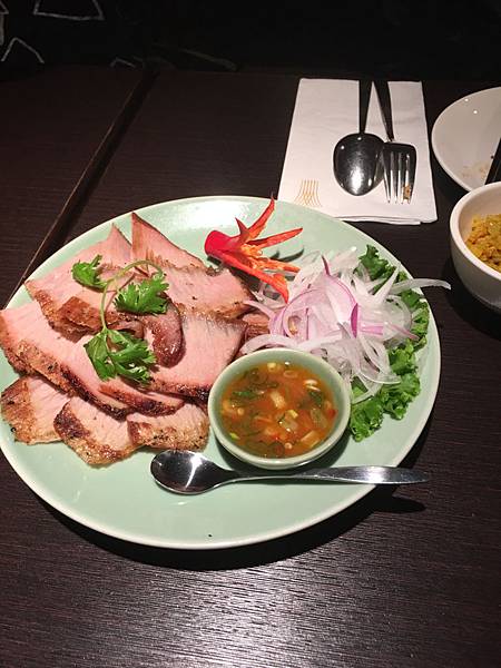 菲菲六月有機會和同事到微風聚餐,變選了香茅廚來品嚐,之前都沒吃過這間,直到吃完才發現,餐廳名是"香茅廚",不是只有"香茅"😱,所以特別標示三次,香茅廚、香茅廚、香茅廚趁著餐廳人不多,跟經理順便小聊一下,才知道老闆是投資宜蘭民宿-小白宮的業者,會開餐廳也是因為喜歡泰菜,加上認識知名飯店的主廚,便挖角來開店囉,口味走得是傳統泰味,所以絕對吃得到酸、辣💕不多說~看看菜色炭烤松阪豬-豬肉烤的嫩度剛剛好,也不會太薄,但一定要加沾醬,不然它的豬肉可沒有特別調味喔