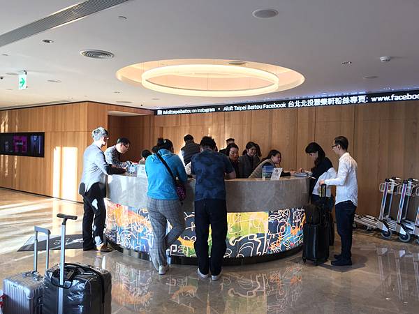 當菲菲在16年12月得知北投要開一家全新的酒店雅樂軒,據說它們是W hotel集團旗下(更正:萬豪集團已收購喜達屋集團,所以現在都歸萬豪集團的飯店之一,而且在試營運期間也推出特惠,二話不說,即使自己是北投人,也要搶先體驗!下午三點多到飯店check-in時發現人其實蠻多的,看來大家都是想趁優惠期間入住體驗😏看到滿滿的一圈人吧! 可能是剛營運,感覺櫃檯人員有點手忙腳亂,趁老公去check-in時,菲菲在lobby盡情拍照雅樂軒櫃檯旁的展示區,東西不多
